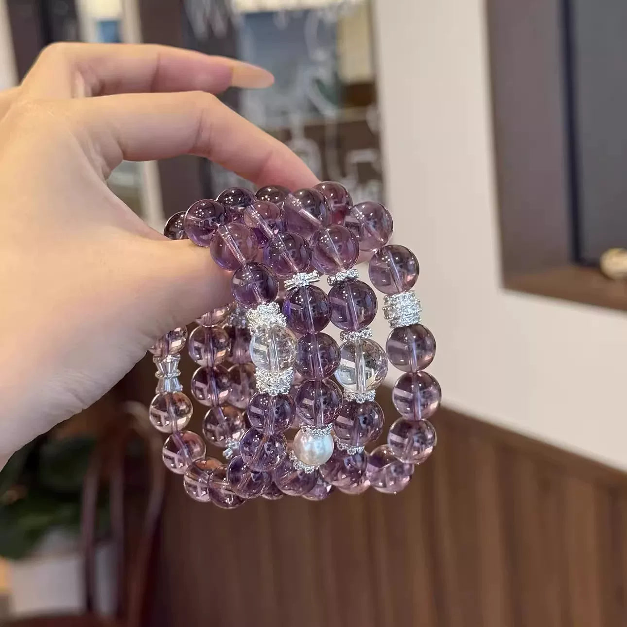 Iced Grape Purple Crystal Bracelet, a high-end, dreamy purple beaded bracelet, an elegant and cool-toned accessory symbolizing good fortune and healing, 12mm beads.