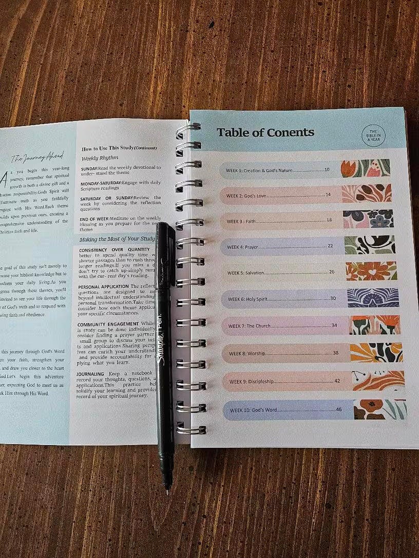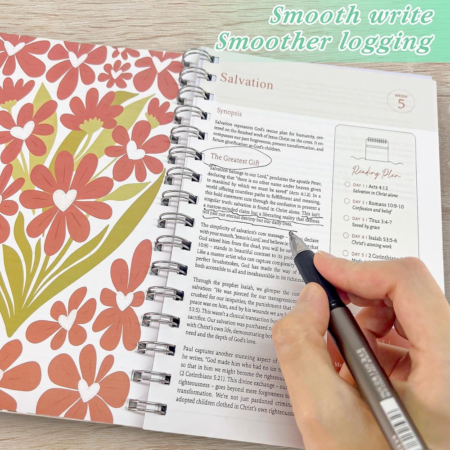 Our 52-week study breaks everything down into clear, focused themes.Each week gives you Scripture, reflection prompts & space to write.Instead of skimming or guessing, you're truly connecting with God in away that makes sense.