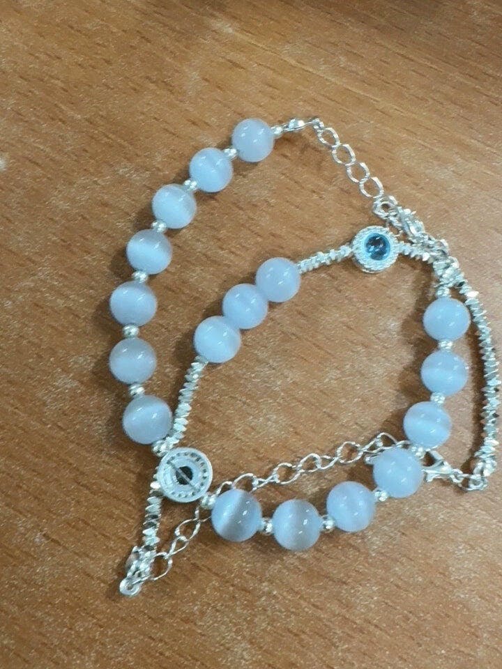 Underwater Starry Sky - Cat's Eye Stone and Silver Bead Bracelet for Women, a luxurious and elegant piece of jewelry.