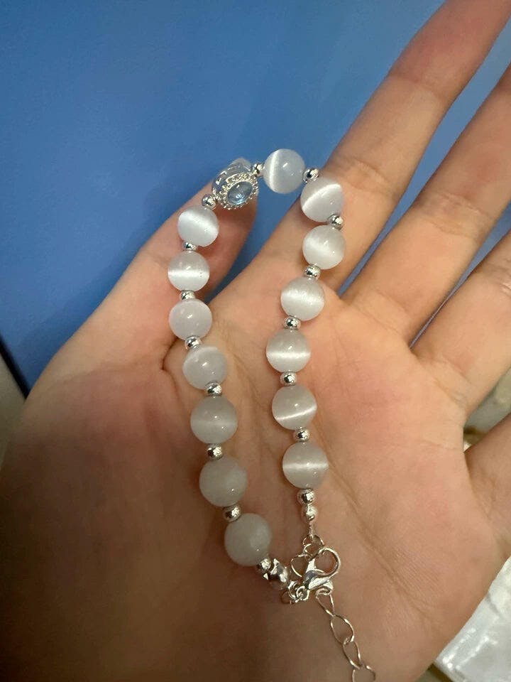 When the flowing luster of cat's eye stone meets the coolness of crushed silver beads, it creates this "Underwater Starry Sky" exclusive to your wrist ✨