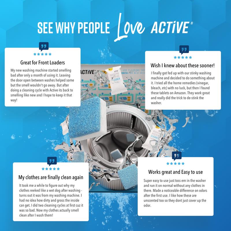 No more musty smelling washing machine or clothes. These cleaning tablets target the hard to reach areas where stinky grime builds up in your washer.