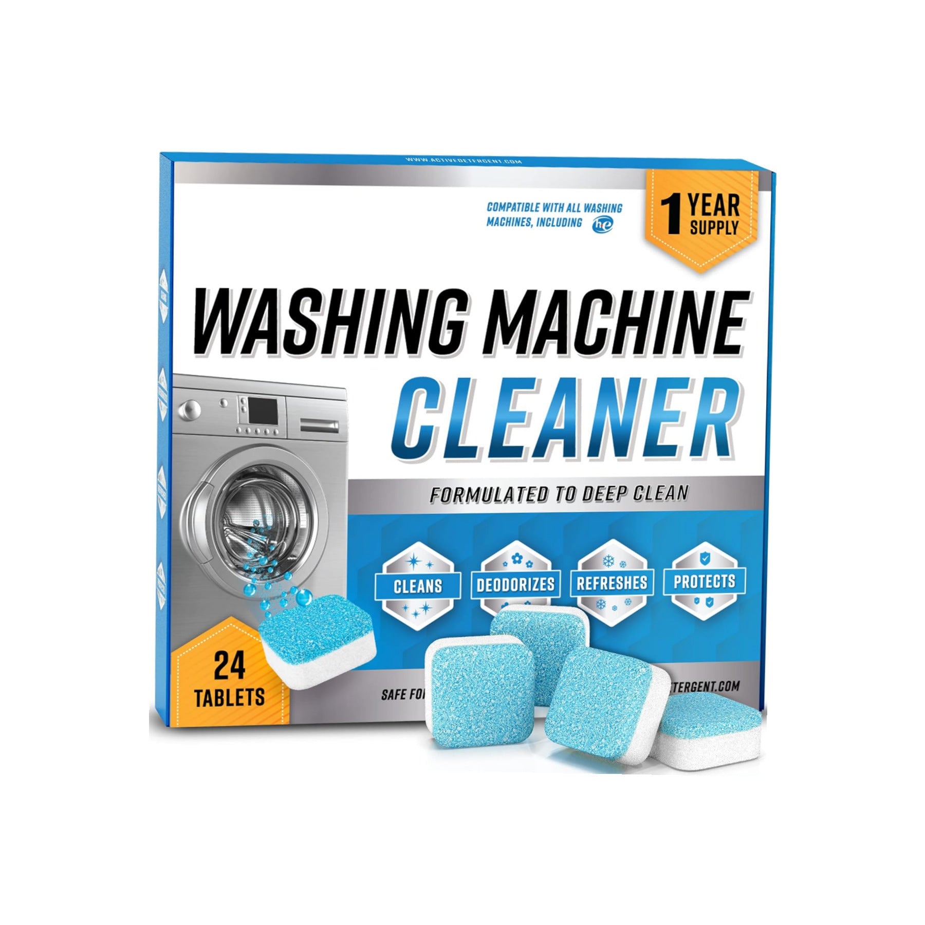 Washing Machine Cleaner Descaler 24 Pack - Deep Cleaning Tablets For HE Front Loader Top Load Washer Deodorizer, Inside Drum And Laundry Seal