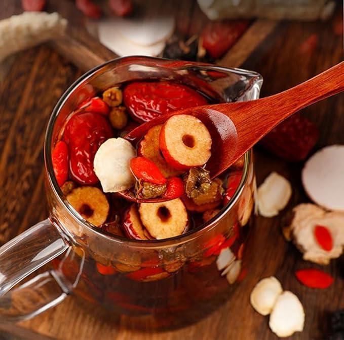 The tea soup is clear and rich. with the fruity aroma of blackberries. the sweetness of red dates. and the lingering aftertaste of ginseng filling your mouth. Multiple layers burst forth on your tongue. and every sip is a natural nourishment! The fruit flesh after brewing can be eaten directly. it's soft. sweet and refreshing!