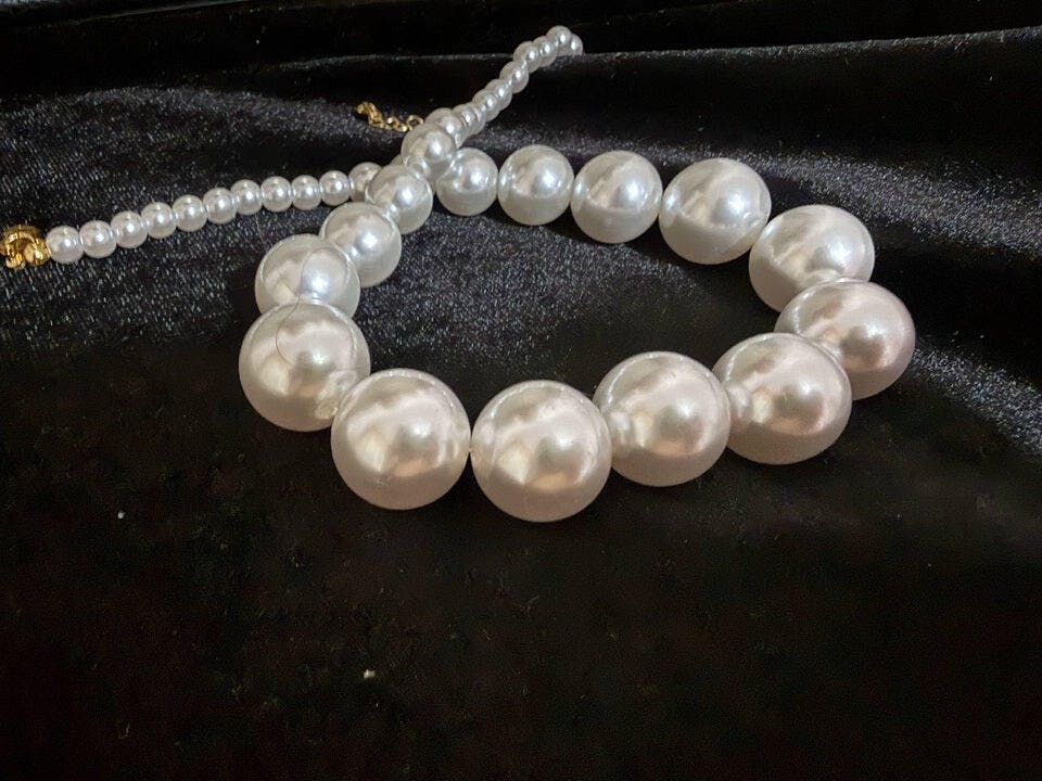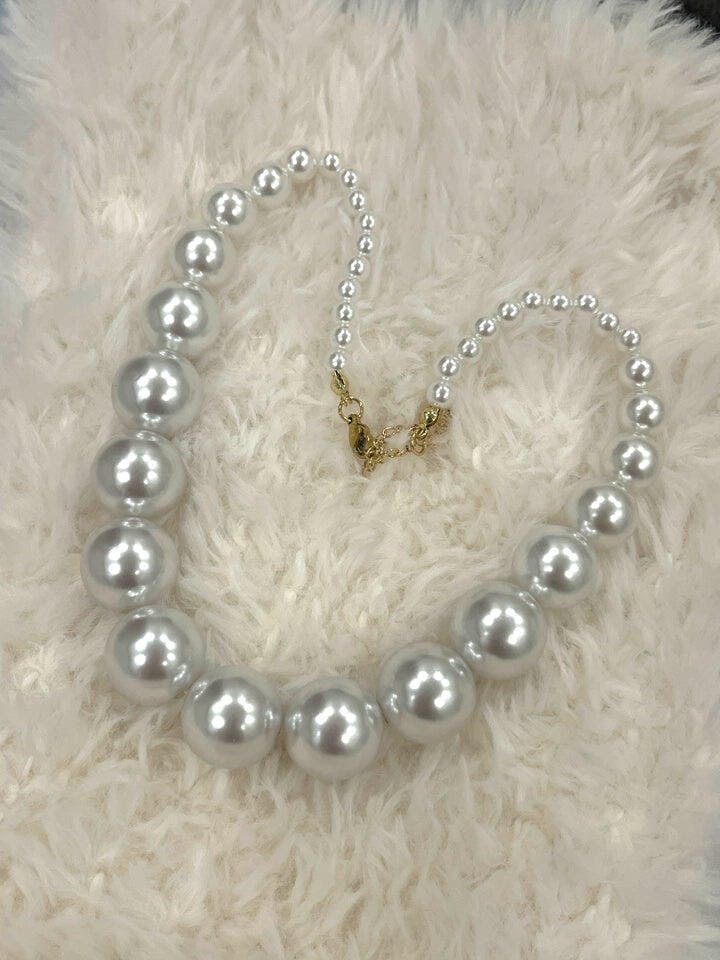 This pearl necklace is so stunning. The oversized pearl design is bold and full of personality, and the pearls have such a rich luster'total vintage luxury vibe! It's the perfect accessory to level up your outfit's elegance and uniqueness, plus it goes with everything. Obsessed