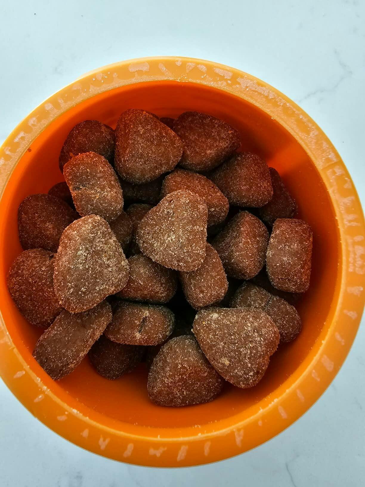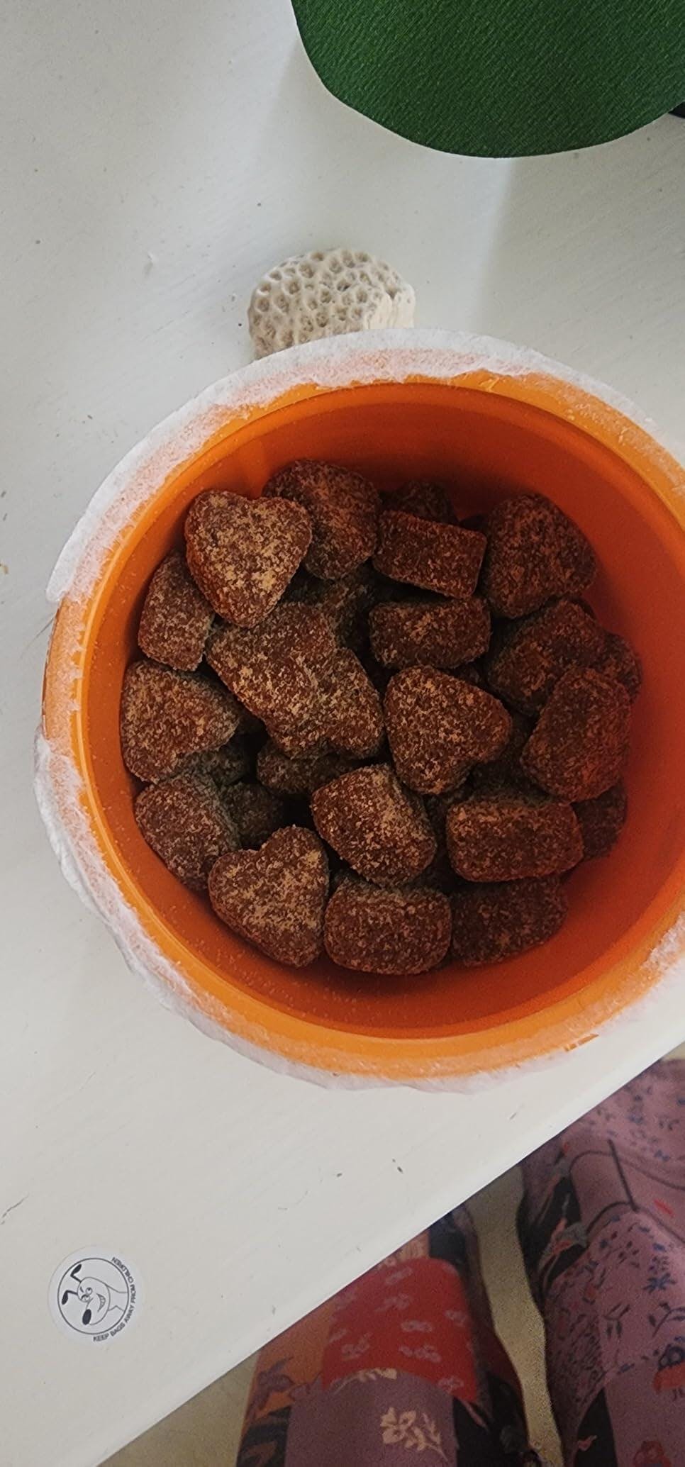 Super happy with this product for my Cairn Terrier. The container is nicely sealed and it has a great twist top to keep them fresh. This is a chewable that is easy for the dog to chew or swallow. They are shaped like hearts and they don't smell terrible. My dog is so fussy about dog foods and flavors. This product is something that he willingly eats without any fuss. I am happy to find a multivitamin that he enjoys and can enhance his overall health.