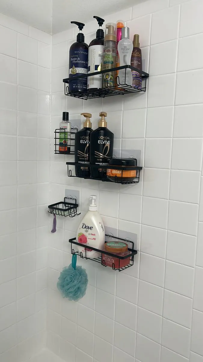 Great shower caddy set! Sturdy, holds a lot, and sticks firmly with no slipping. Looks clean and modern in black. Super easy to install and instantly made my shower way more organized. Worth it!