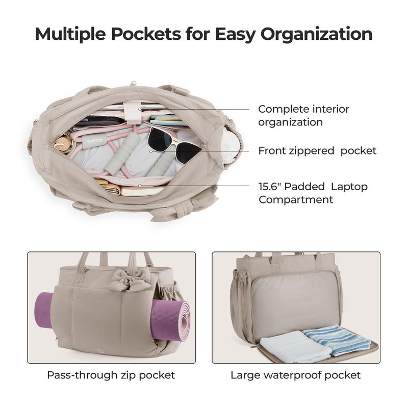 BAGSMART Crush Bow Tote Bag for Women 15.6" Laptop Friendly Lightweight Puffy Handbag with Removable Bow & Multiple Compartments for Travel Work Beach Gym 20L Capaci