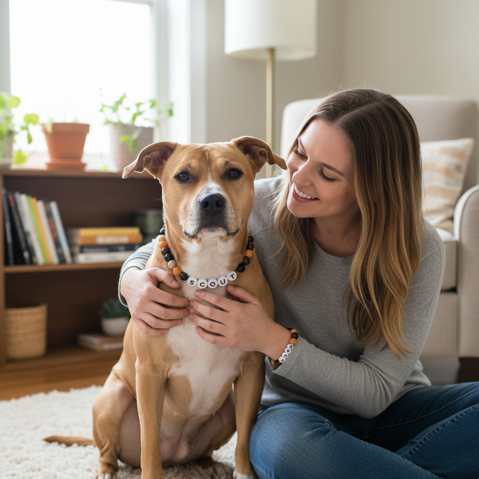 Our collars are made to order in your chosen size and are not adjustable. We do this to ensure the beadedsection is centered and your dog's name sits perfectly in place. To get the best fit, just follow our quick sizingguide before ordering!